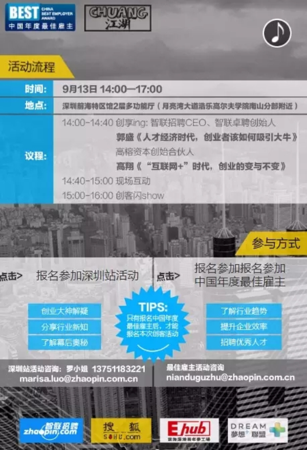 前海深港青年梦工场、前海“梦想+”联盟联合搜狐财经、智联招聘举办,
