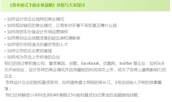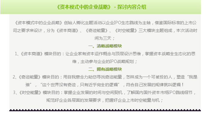 《资本模式中的企业战略》创始人研讨会,探讨资本运作的知识与技巧、